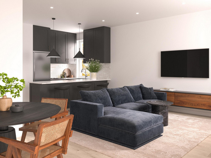 - Large windows allow for natural light that showcases the apartment's luxurious finish and makes meal prep a joy